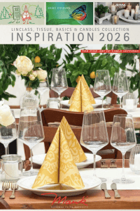 Katalog Inspiration 2026 to zaproszenie do świata HoReCa, pełnego urozmaiconych wzorów i kolorów. Znajdziemy tu różnorodne produkty wykonane z Airlaidu, wykorzystane w fantazyjnych aranżacjach i pasujące na wiele okazji oraz dodatkowe akcesoria, idealne do stosowania przez klientów hoteli i restauracji.